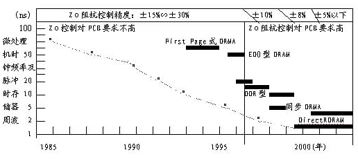 随着电子整机产品的高速化发展,这就要求所使用PCB的特性阻抗控制要求达到高精度化。以计算机高速化进展为例,就可以说明这一需求的发展趋势。