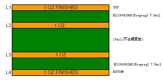 以下是我司生产的一种板件,该板的要求:4层板,完成板厚1.0±0.10mm,板材采用FR4,客户有指定的叠层结构,见下图