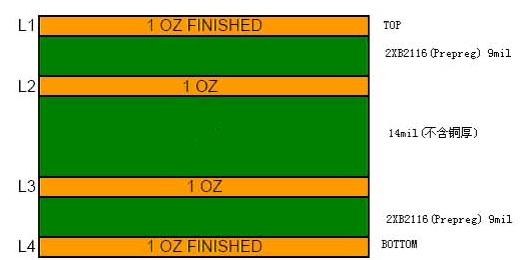 以下是我司生产的一种板件,该板的要求:4层板,完成板厚1.0±0.10mm,板材采用FR4,客户有指定的叠层结构,见下图